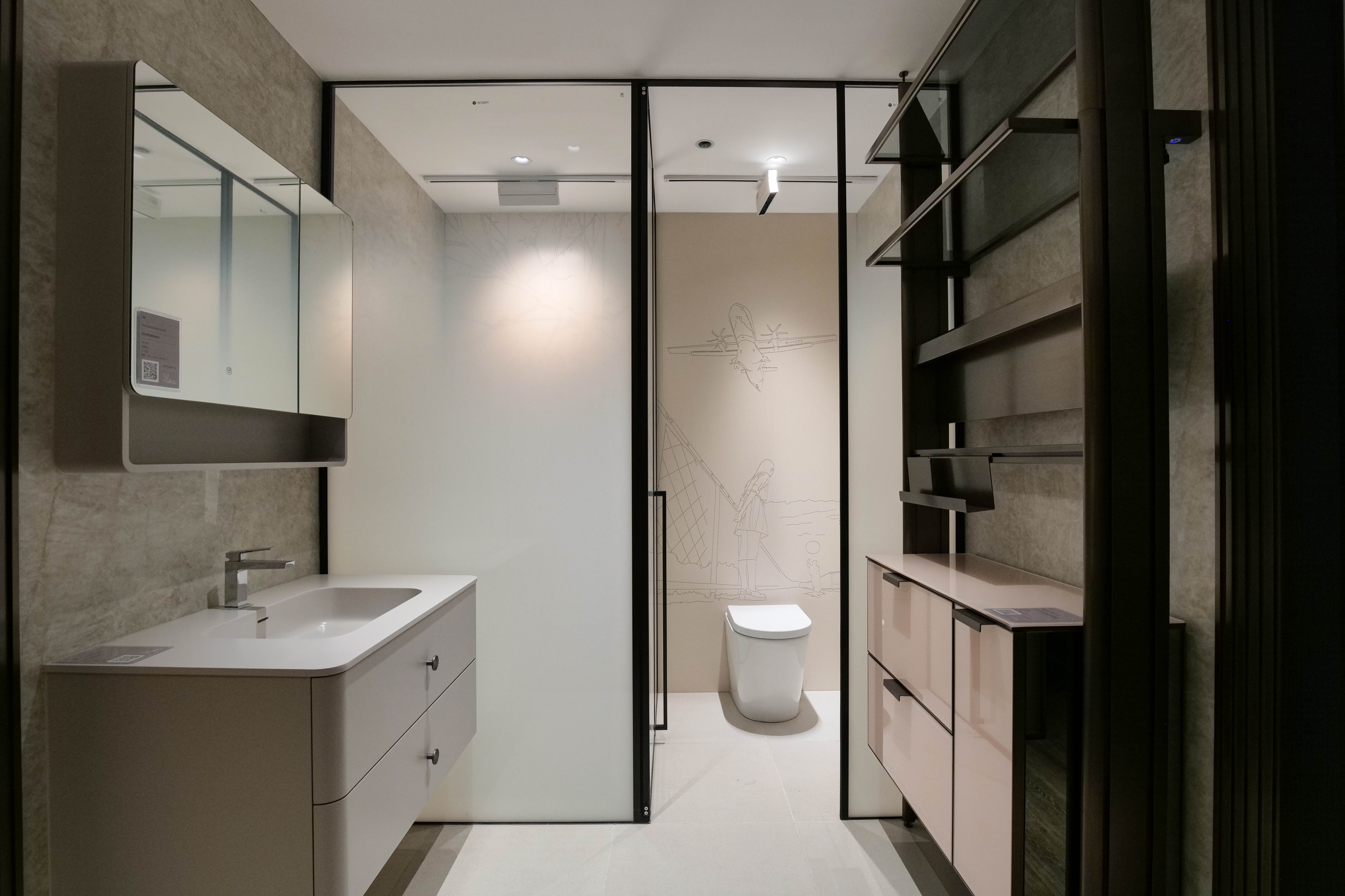 • 洗手盆引入人造石一體成型檯面及 SPC 一體式檯面延伸設計美觀大方,取代傳統陶瓷。