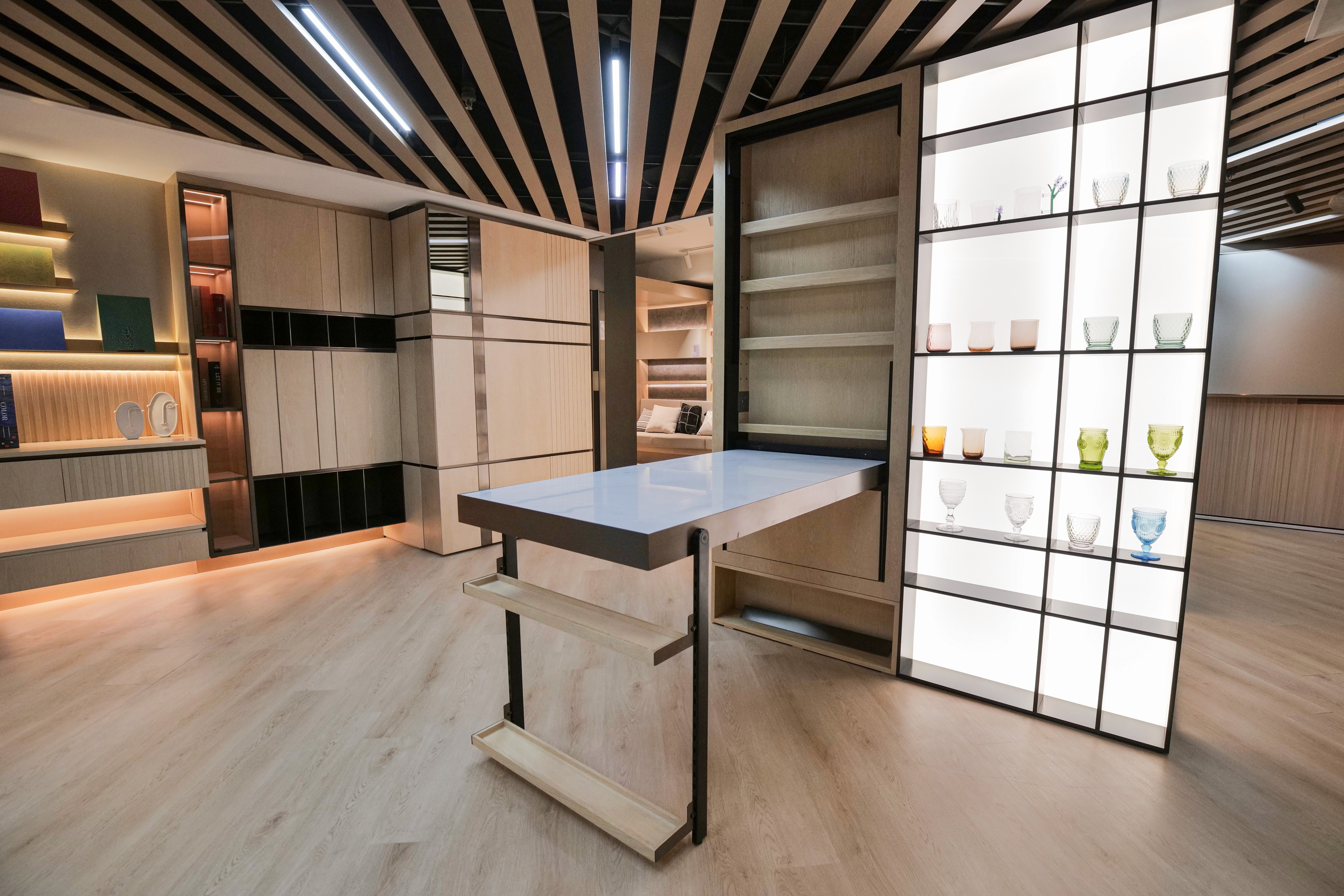 Living room: after the bed is folded away, it can be converted into a fitness area, creating a linked "living + fitness" scenario.