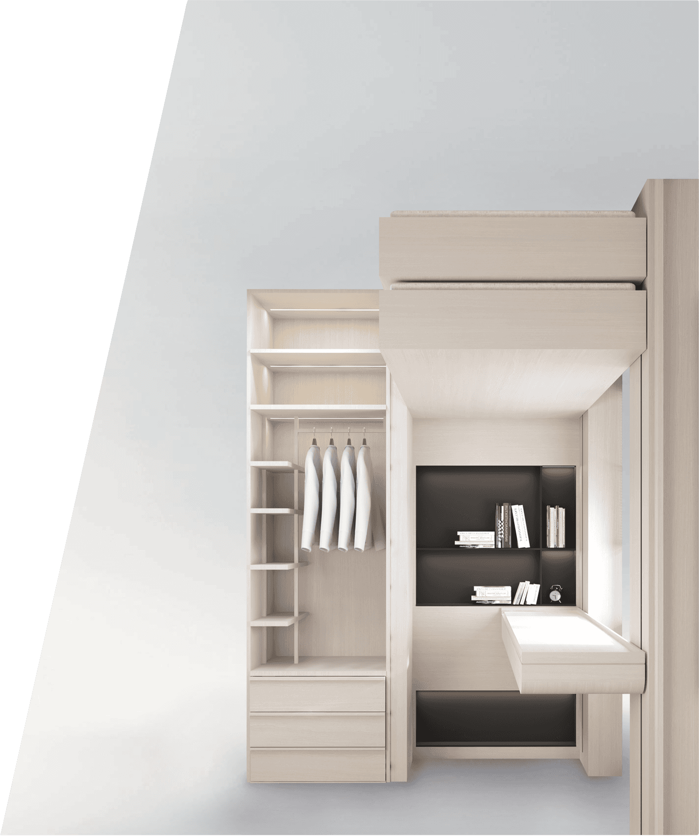 Through electric mechanisms and modular design, we integrate everyday functions such as sleeping, working, relaxing, and storage into the same space, allowing limited square footage to deliver maximum value. With smart space solutions at our core, we seamlessly combine intelligent technology with furniture design to create a brand-new way of home living.