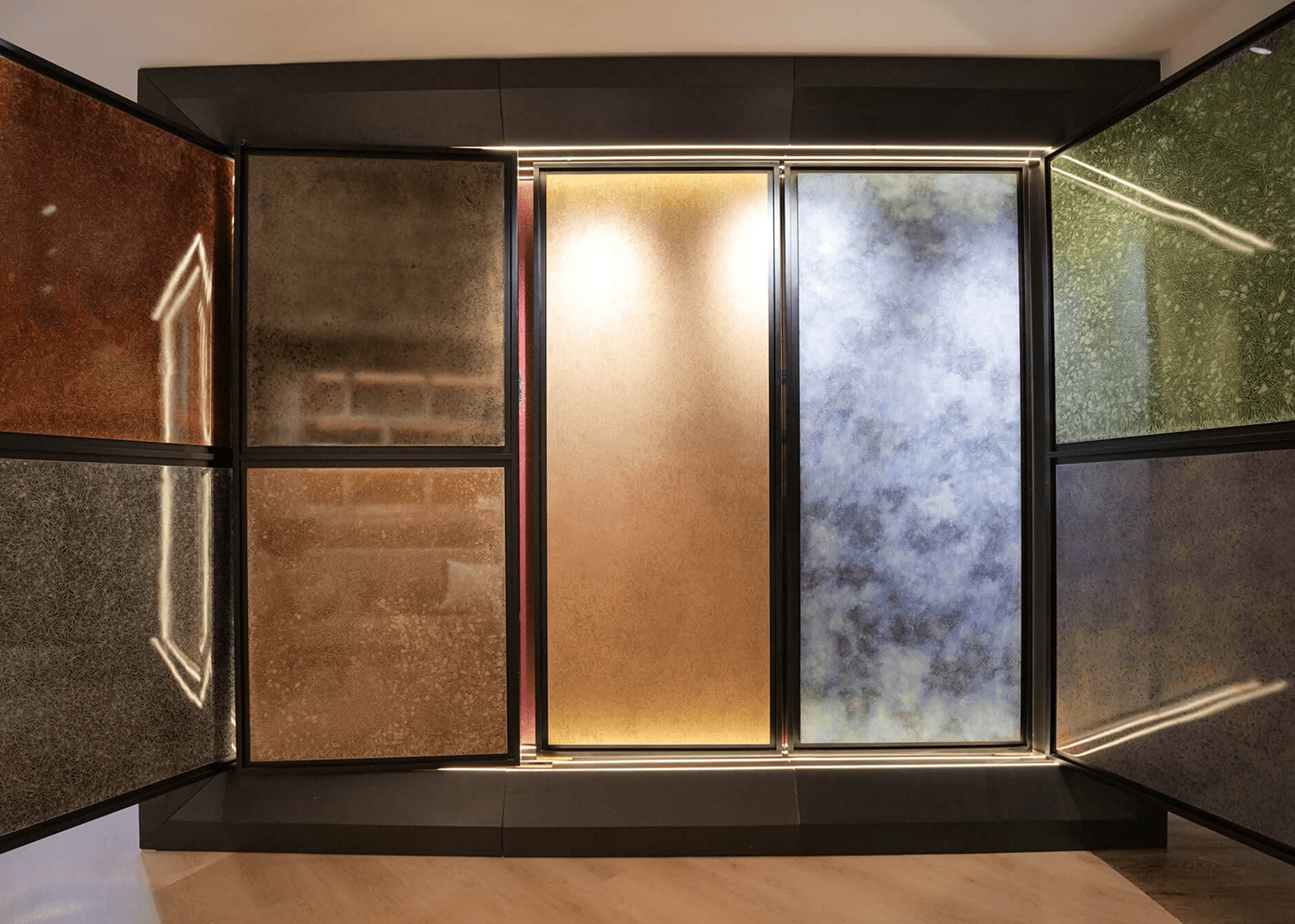 Through this effect, whenever the viewing angle shifts, the surface effect also changes, creating depth and texture transformations and expressing a unique tactile quality unmatched by any other material.